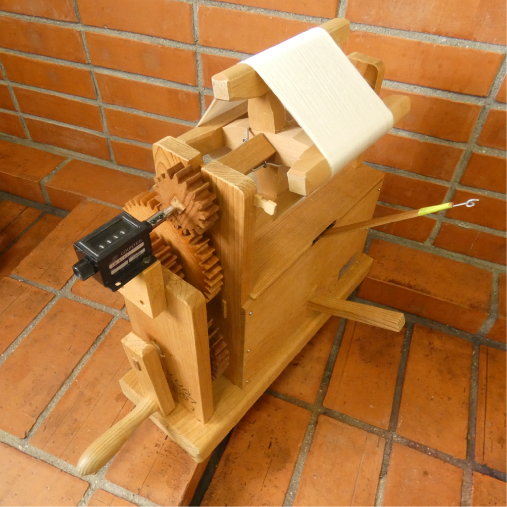 2階には染織に関する器機が備えられています。機織り工房として利用ができ、機織りの体験コーナーも設置しております。1階の養蚕施設で作った繭から糸を挽き、染色・織りに関する製品化を行うことができます。